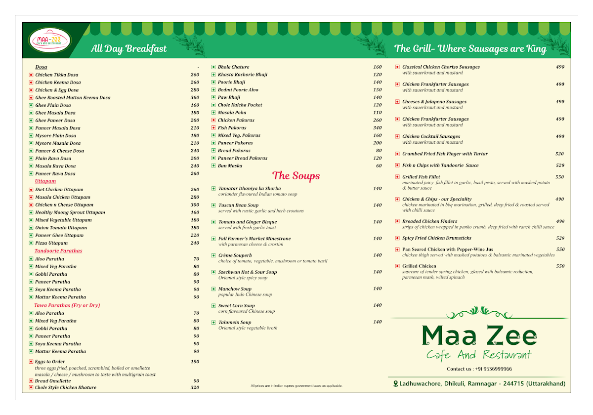 Maa Zee Cafe & Restaurant - Best restaurant & Homestay in Ramnagar Menu